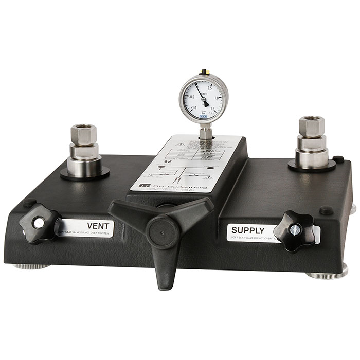 對(duì)于壓力比較泵工作中的精密設(shè)置,可以通過(guò)其自身攜帶的精密可調(diào)容積閥來(lái)實(shí)現(xiàn)。連接外部壓力或者真空的接頭在后面板上。兩個(gè)測(cè)試接頭的螺紋規(guī)格是G ?母螺紋。另外,還有很多不同規(guī)格的螺紋轉(zhuǎn)接頭可選擇。